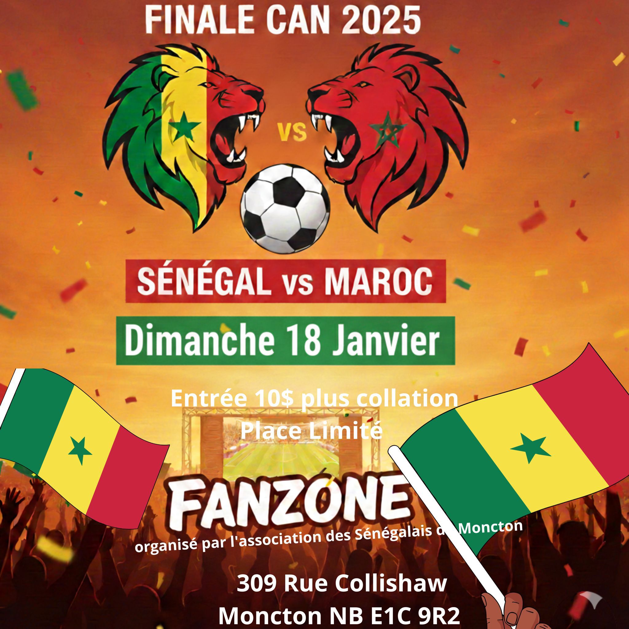 L’Association des Sénégalais de Moncton organise une Fan Zone spéciale pour la finale de la CAN opposant le Sénégal au Maroc.